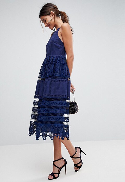 Your wedding date won't be able to keep their eyes off you in this detailed lace fall cocktail dress.